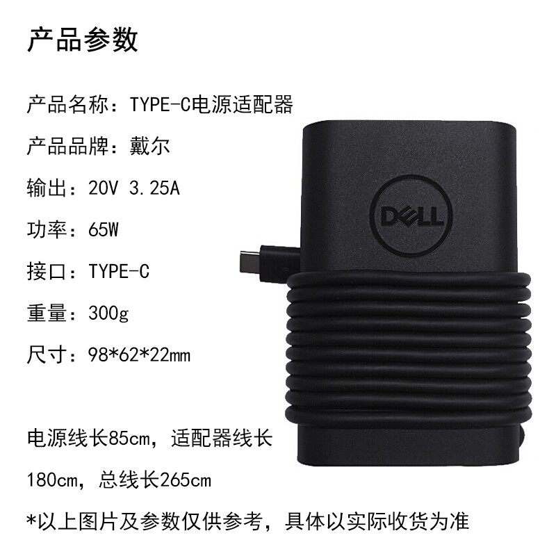 DELL C口 戴尔笔记本电脑充电器65W雷电接口电源适配器充电线Tpye