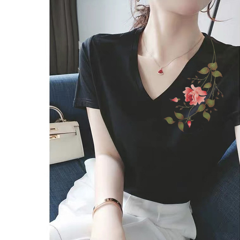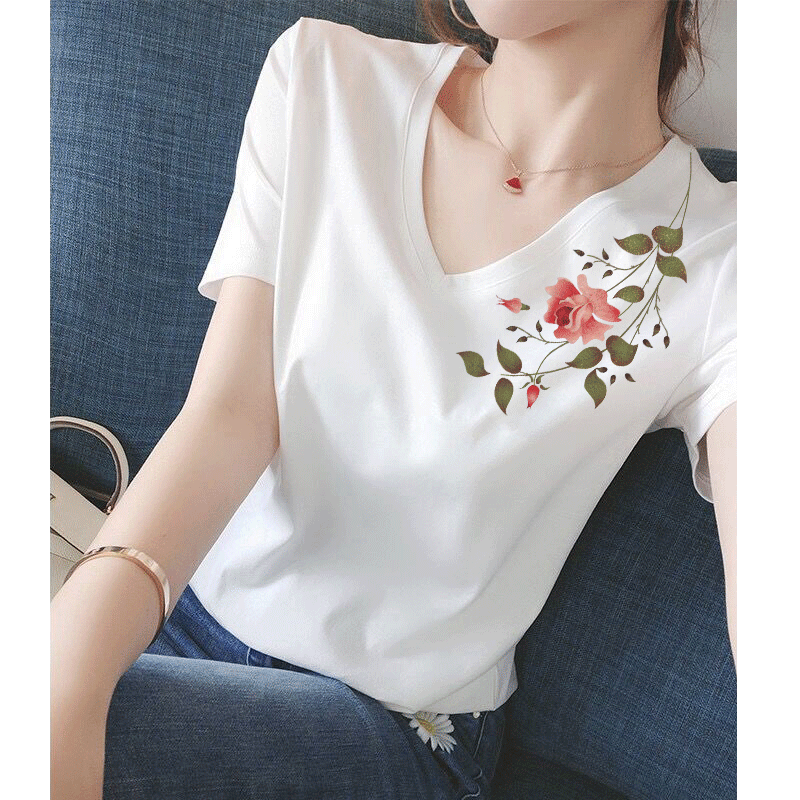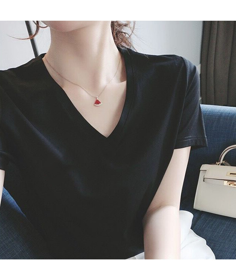 宽松大码 白色纯棉短袖 气质V领半袖 时尚 上衣体恤潮 t恤女2026年新款