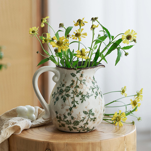 复古仿古田园风陶瓷小花瓶摆件客厅插花干花小众高级感创意装 饰品