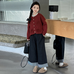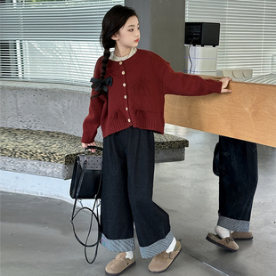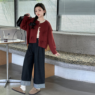 儿童牛仔裤 裤 套装 针织开衫 子潮 洋气女孩韩版 女童毛衣外套春秋新款