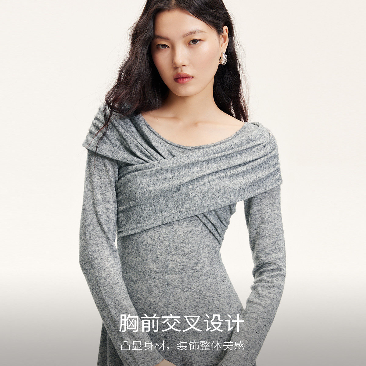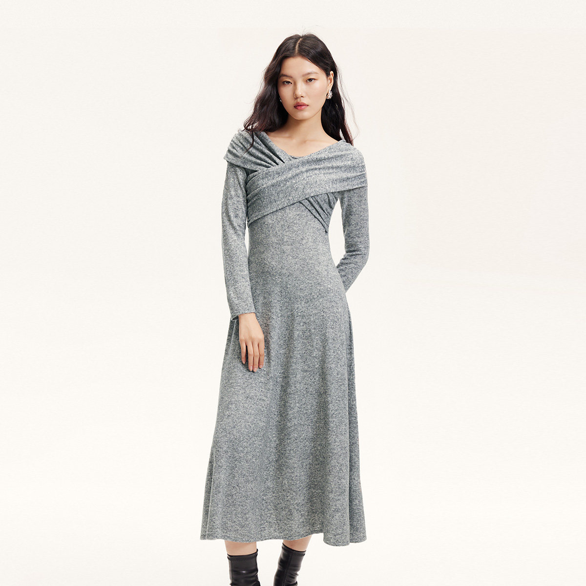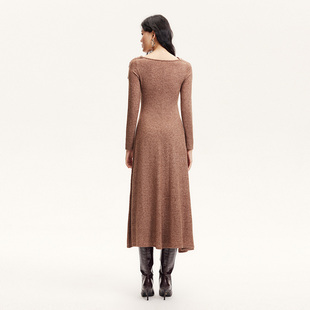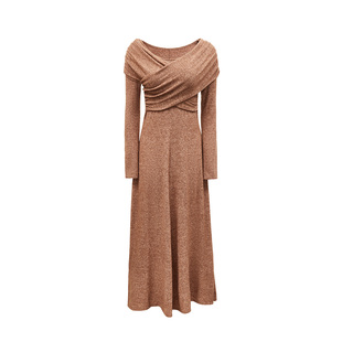 tq区绫致Couture Made连衣裙24秋冬交叉带含绵羊毛长连衣裙美拉德