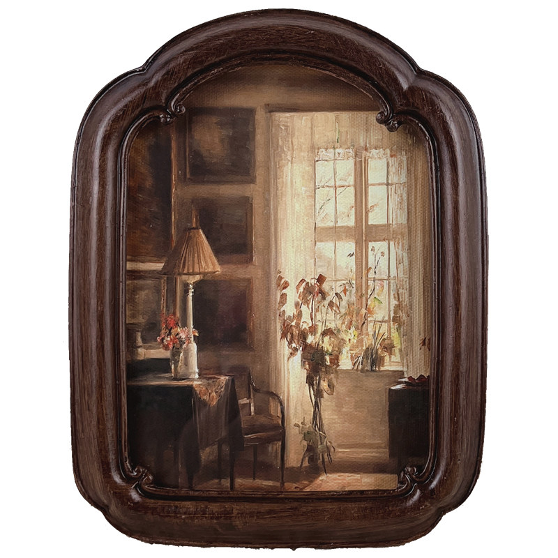 木色欧美式 饰画挂画古典树脂相框客厅玄关餐边柜摆件 复古油画装