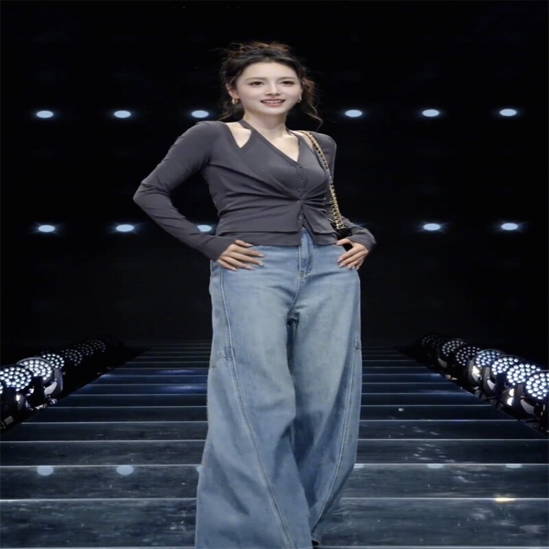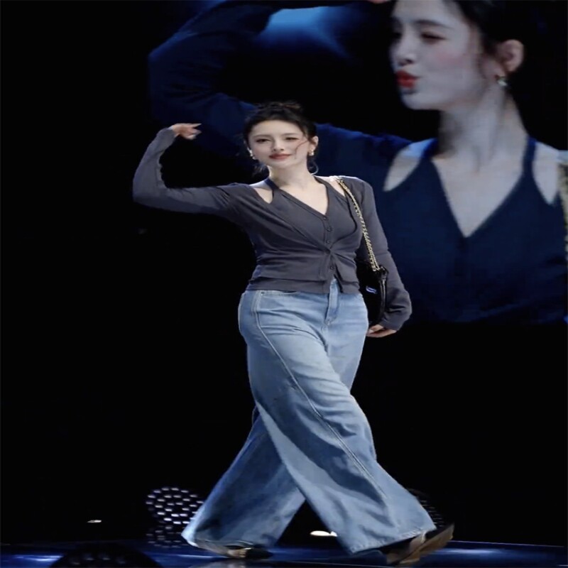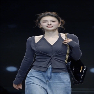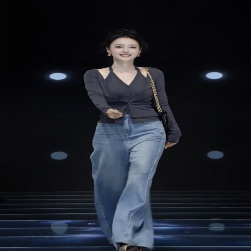 新款 套装 时尚 高腰牛仔裤 女 洋气减龄休闲假两件挂脖开衫 2025年秋季