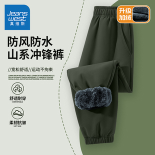 防水裤 子秋冬款 儿童防风工装 裤 男 真维斯童装 软壳加绒冲锋裤 男童裤