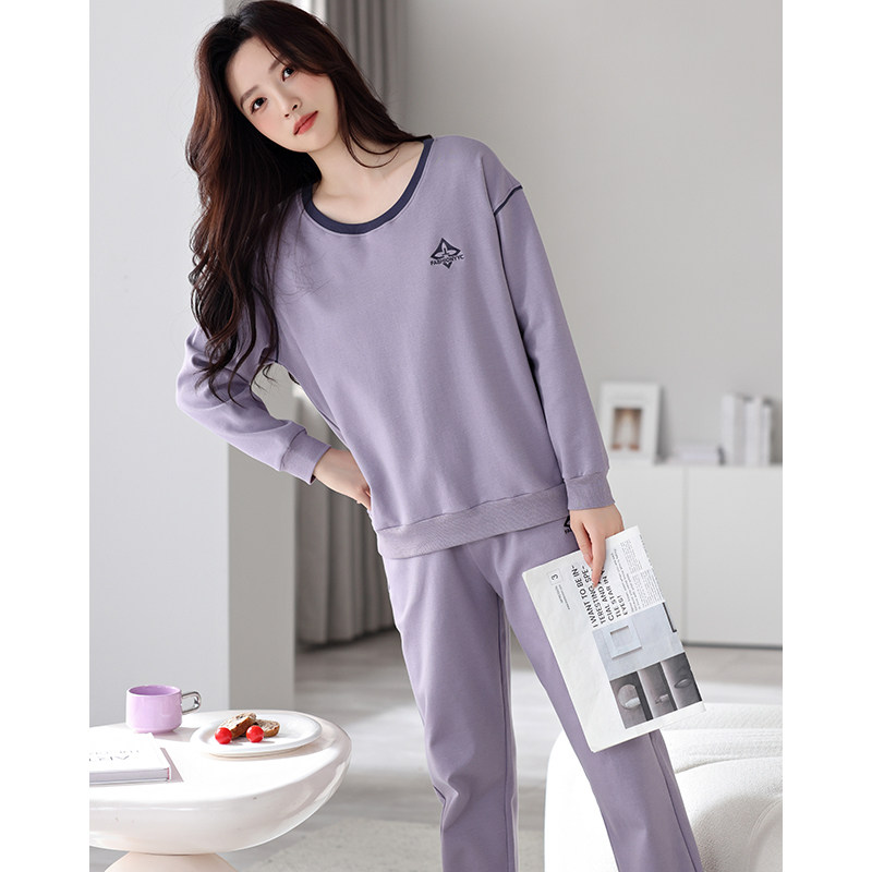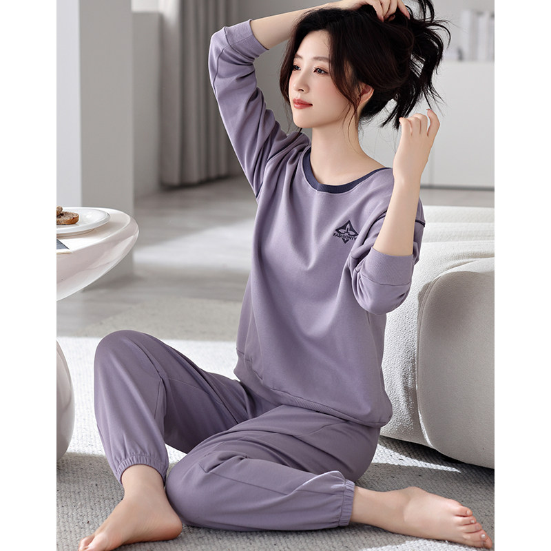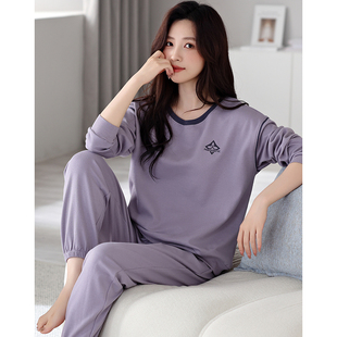 家居服套装 睡衣女春秋款 女士秋季 纯色纯棉秋春长袖 可外穿 2025新款