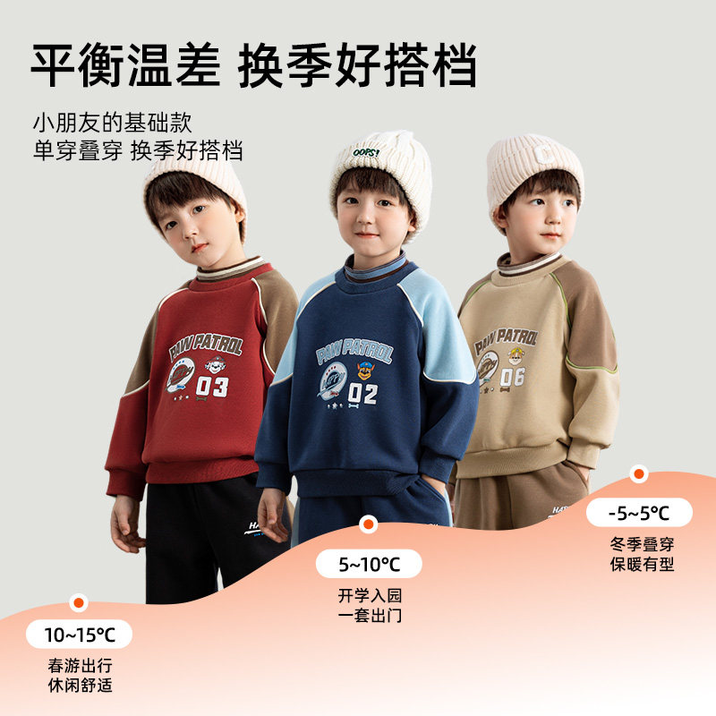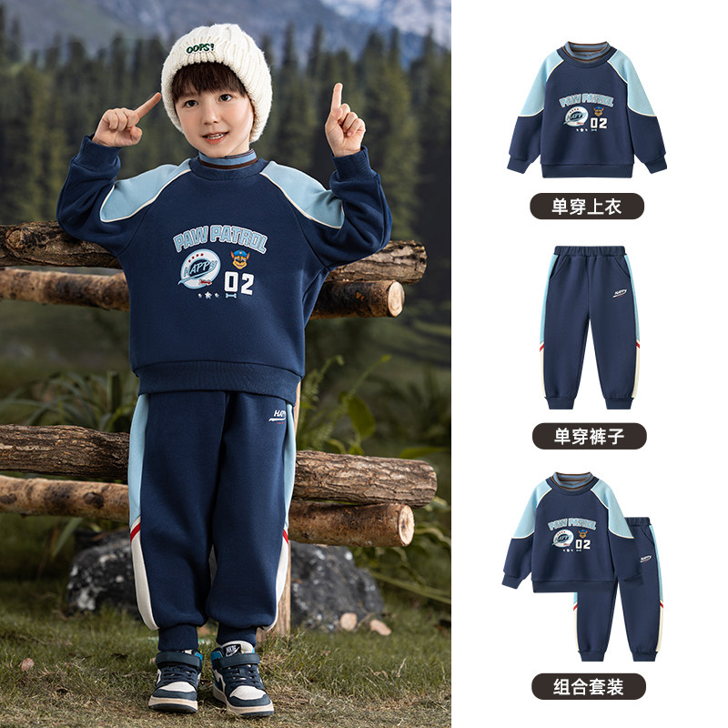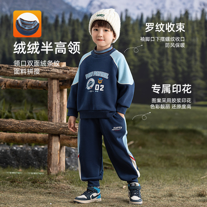 男孩厚冬季 汪汪队男童加绒卫衣套装 冬装 2025新款 儿童运动服 秋冬款