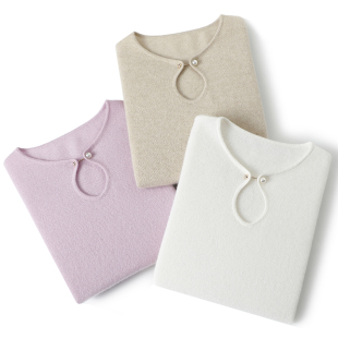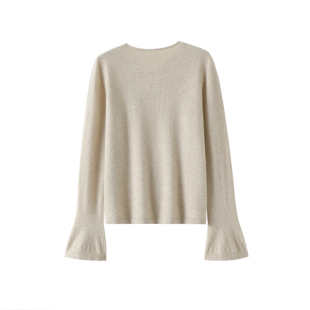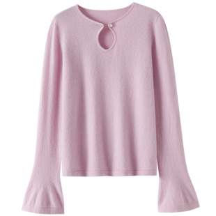 羊绒毛衣秋冬 女喇叭袖 启超纯粹好看 镂空仿珍珠扣100%纯山羊绒衫