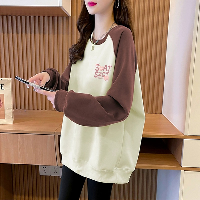 长袖 2024春秋新款 宽松慵懒风插肩袖 卫衣女大码 t恤上衣潮 撞色薄款