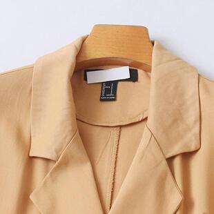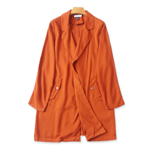 女装 外贸中长款 宽松开衫 春秋新款 宽松休闲上衣外套18394 翻领风衣
