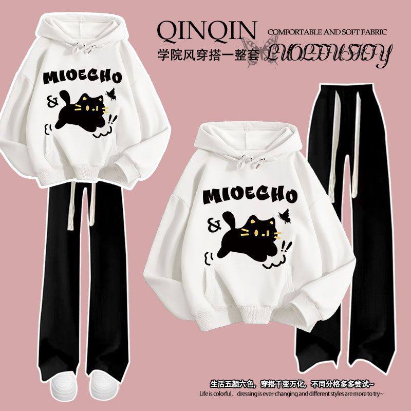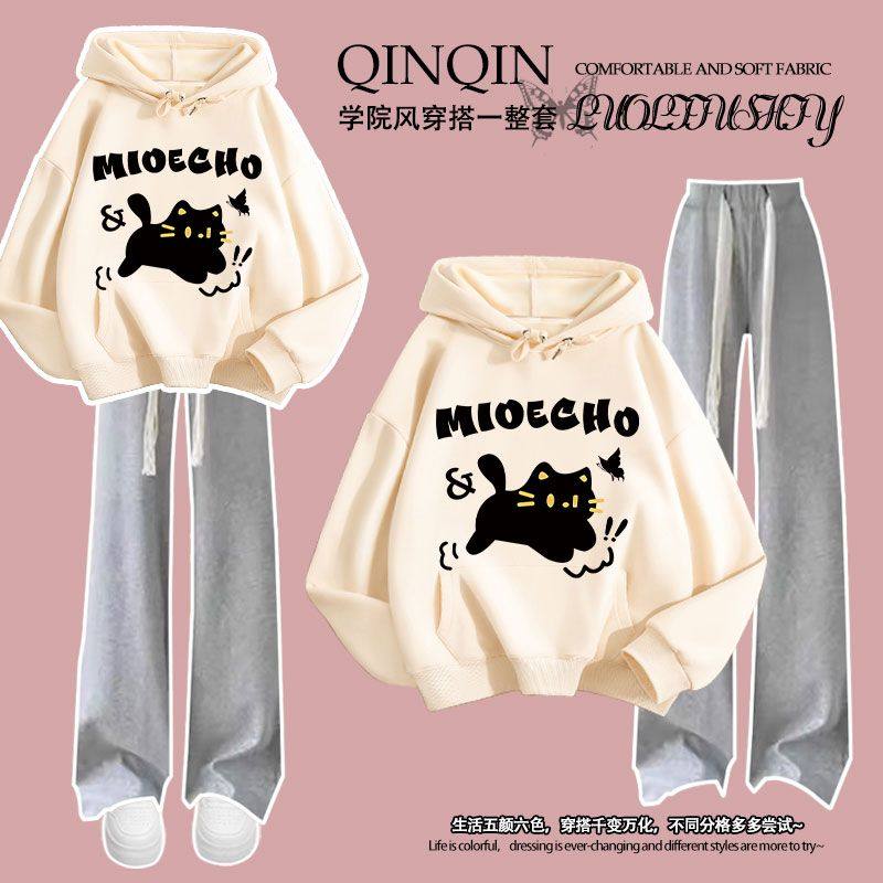 卫衣显瘦时尚 时髦精 overside连帽大版 挂脖背心 两件套 懒人套装