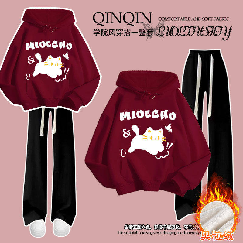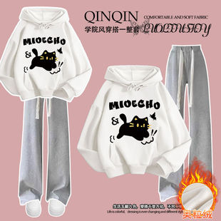 2024新款 上衣男装 秋冬季 美式 一套搭配帅气 加绒长袖 圆领卫衣男套装
