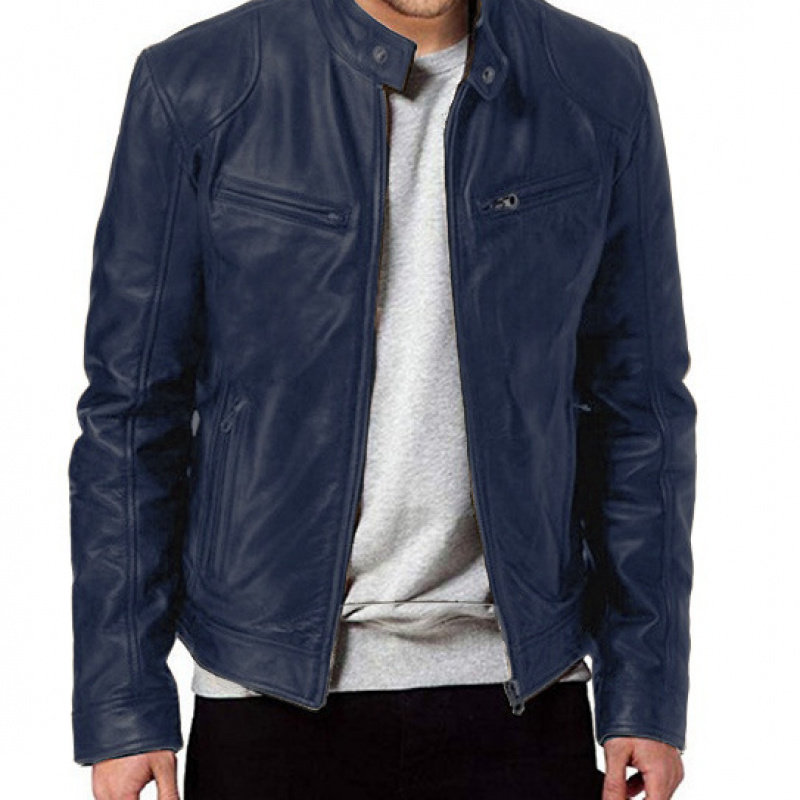 饰PU皮衣立领修身 口袋装 皮夹克P55 商务绅士保暖拉链开衫 外贸冬季