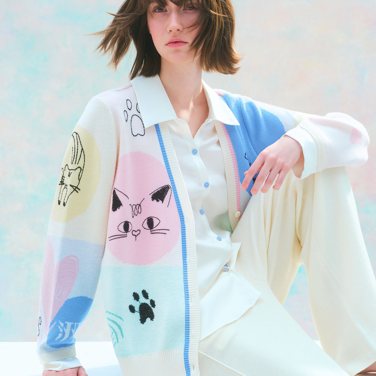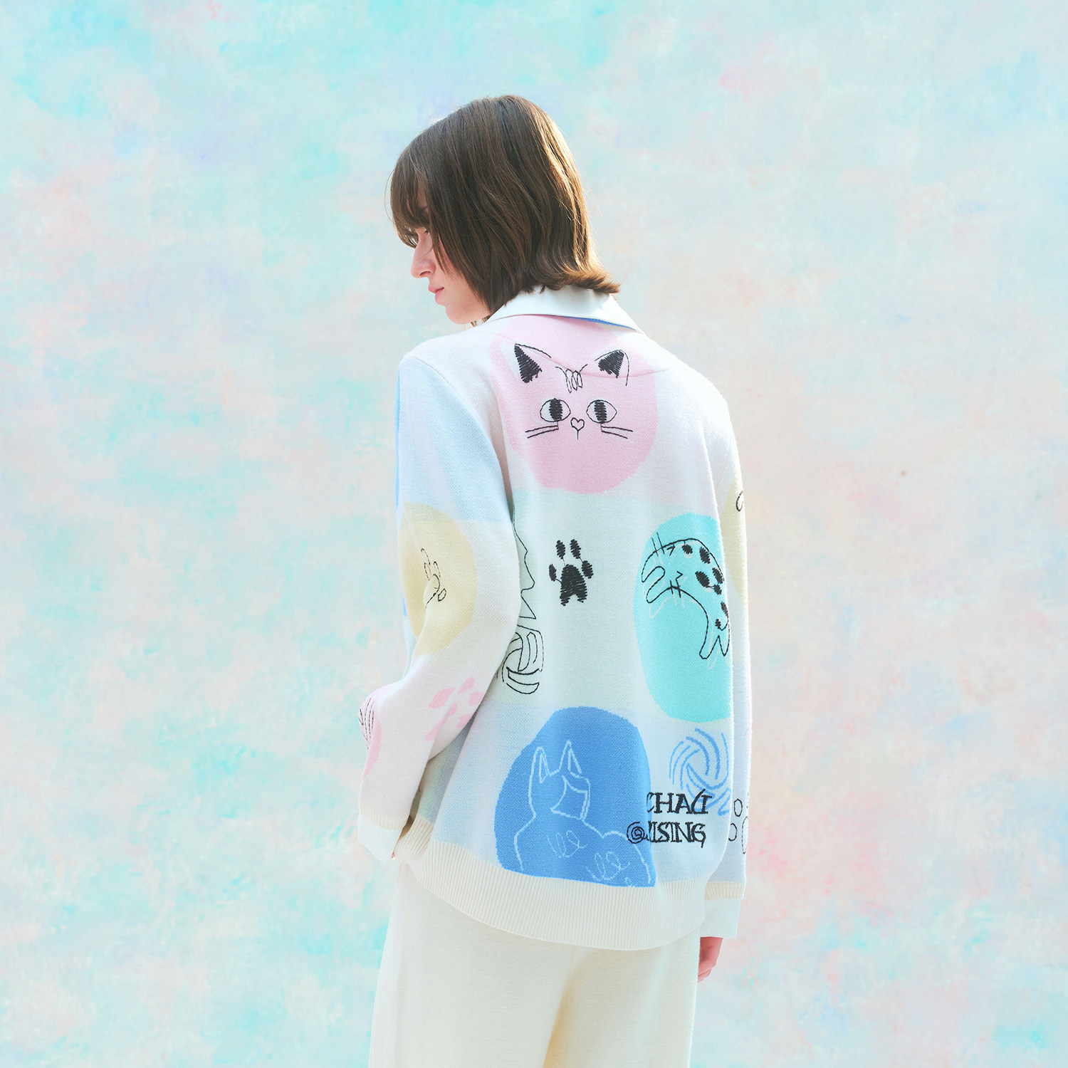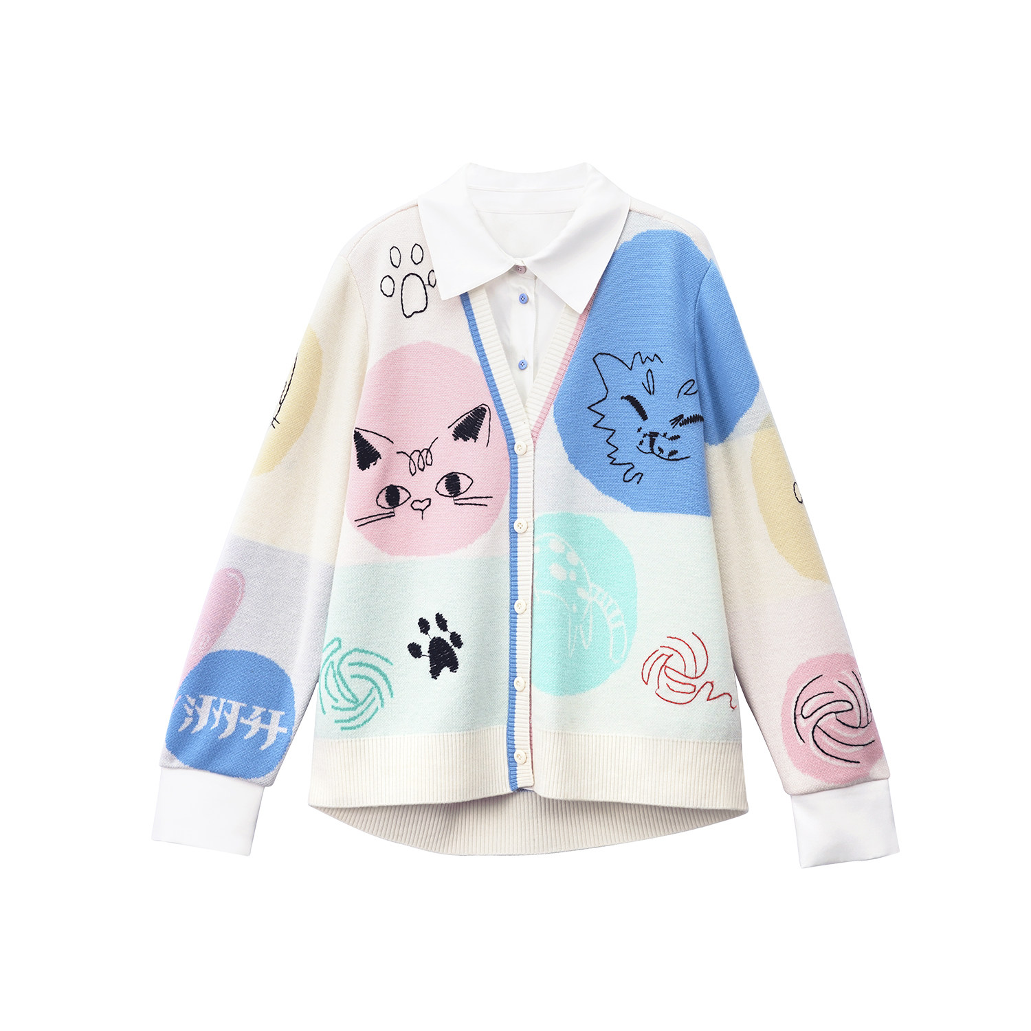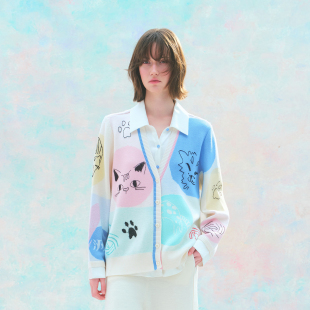 洲升 女 CHAU.RISING春夏可露丽穿搭羊毛真丝拼接假两件开衫
