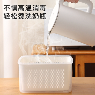 婴儿专用奶瓶收纳盒食品级宝宝吸奶器烫洗沥水防尘收纳箱密封储存