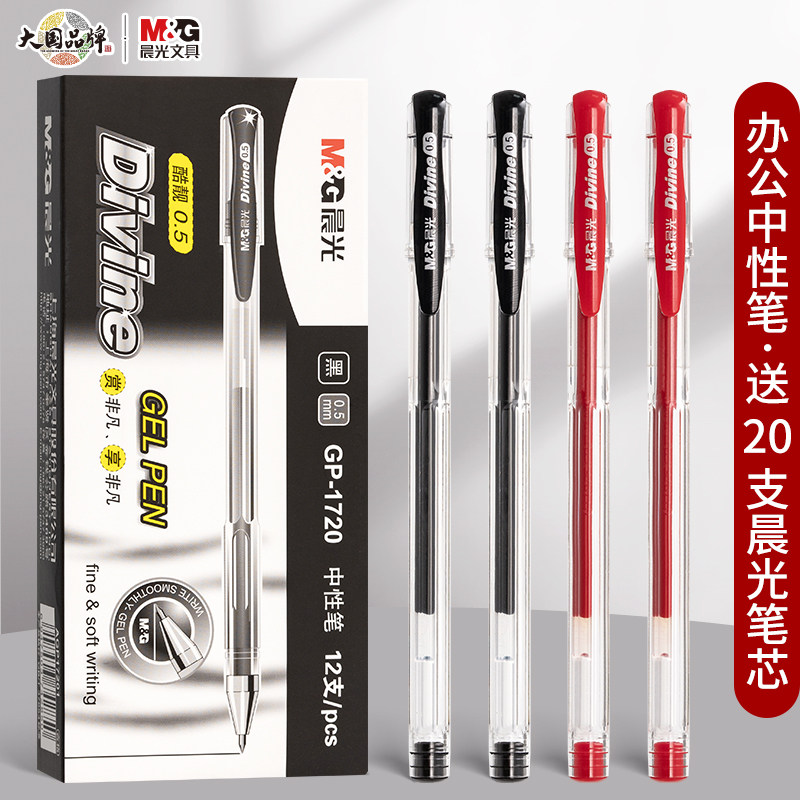 晨光2025新款 简约大容量0.5mm酷客系列商务办公专用顺滑速干签字笔红黑中性水笔拔盖子弹头简约书写GP1720