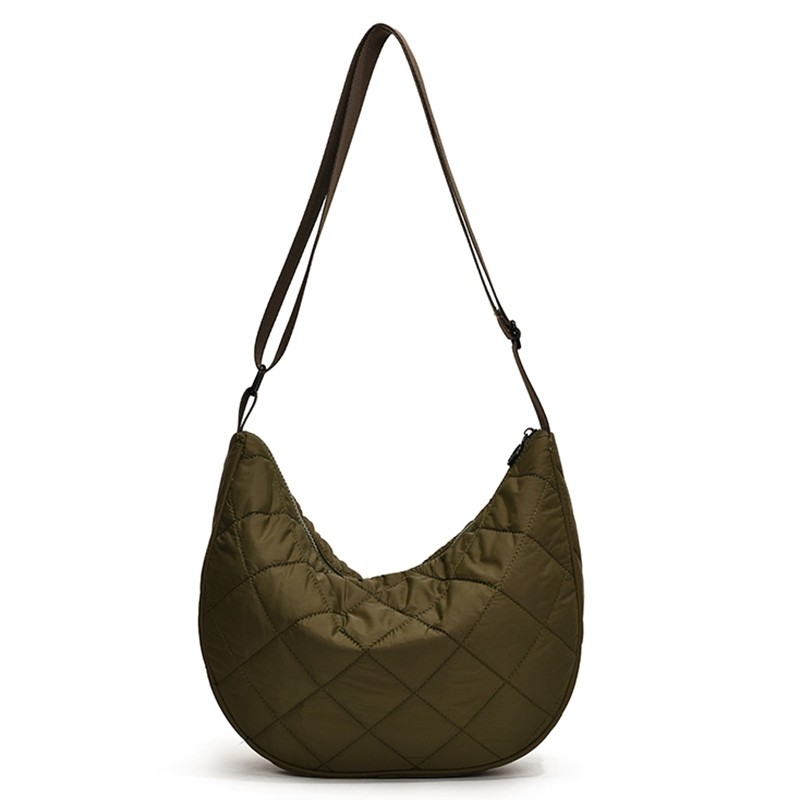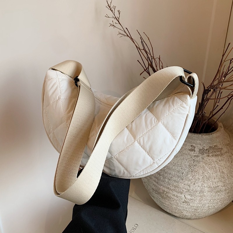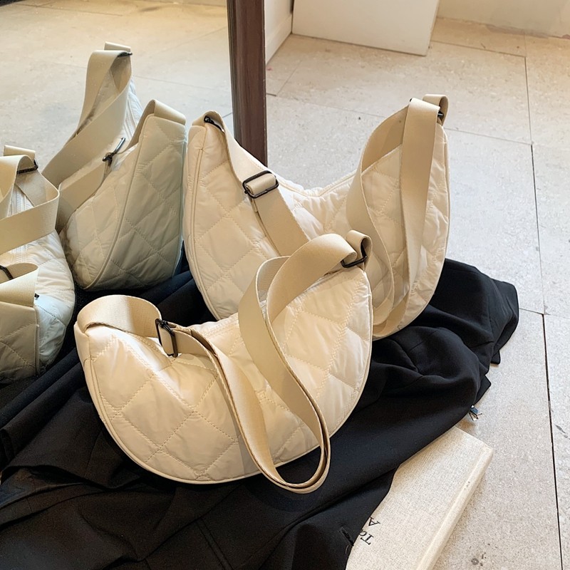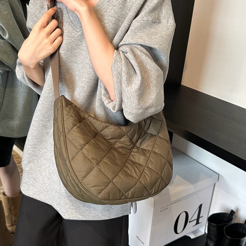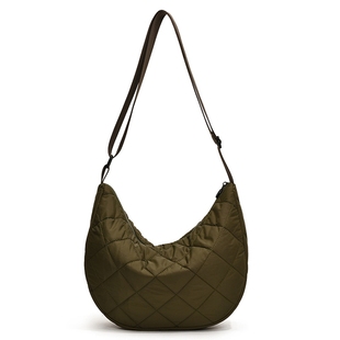 时尚 潮休闲百搭通勤单肩包大容量斜挎包 菱格绣线饺子包女2025新款