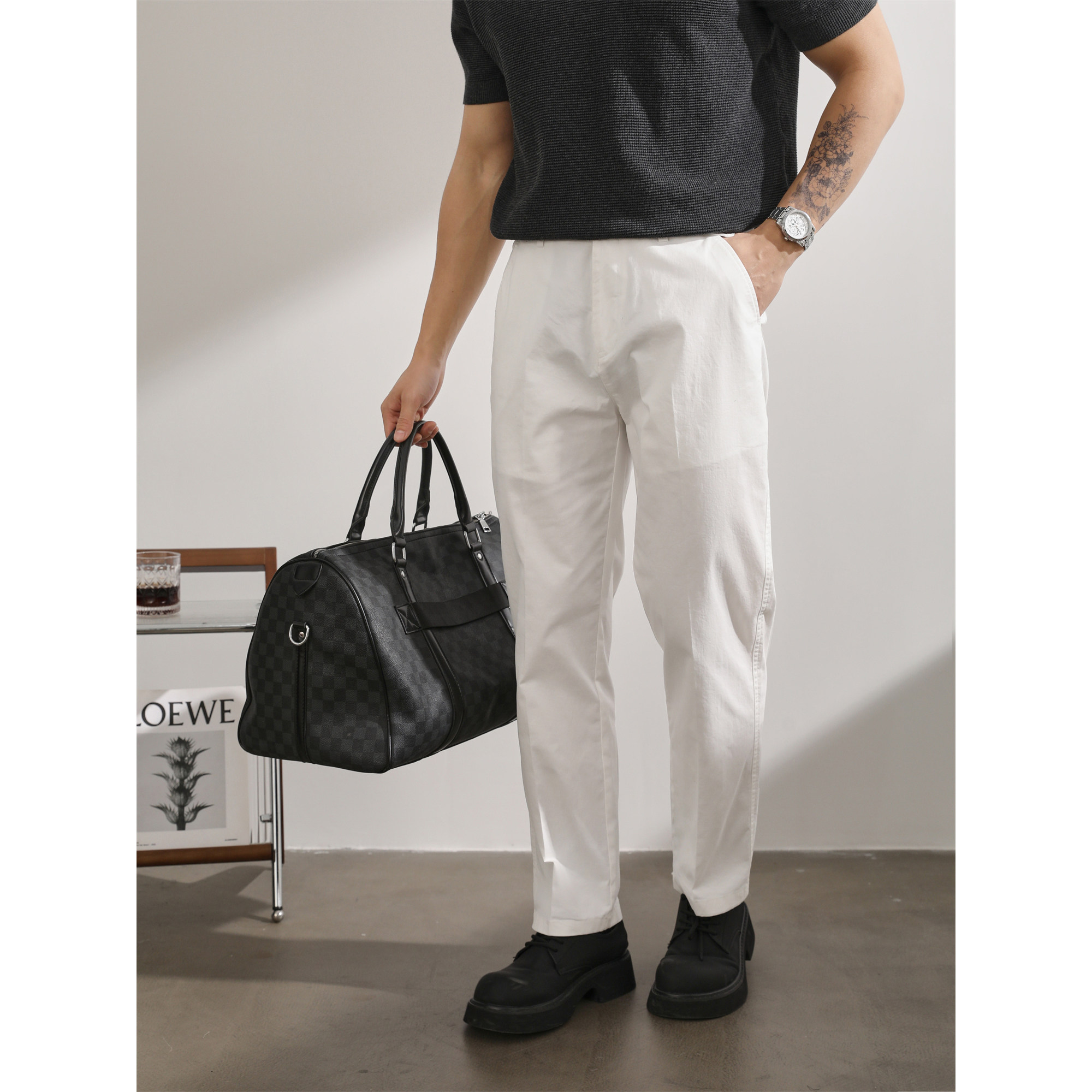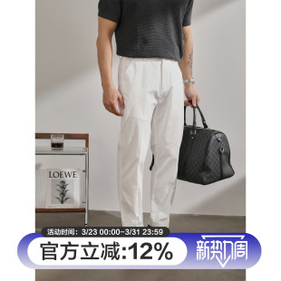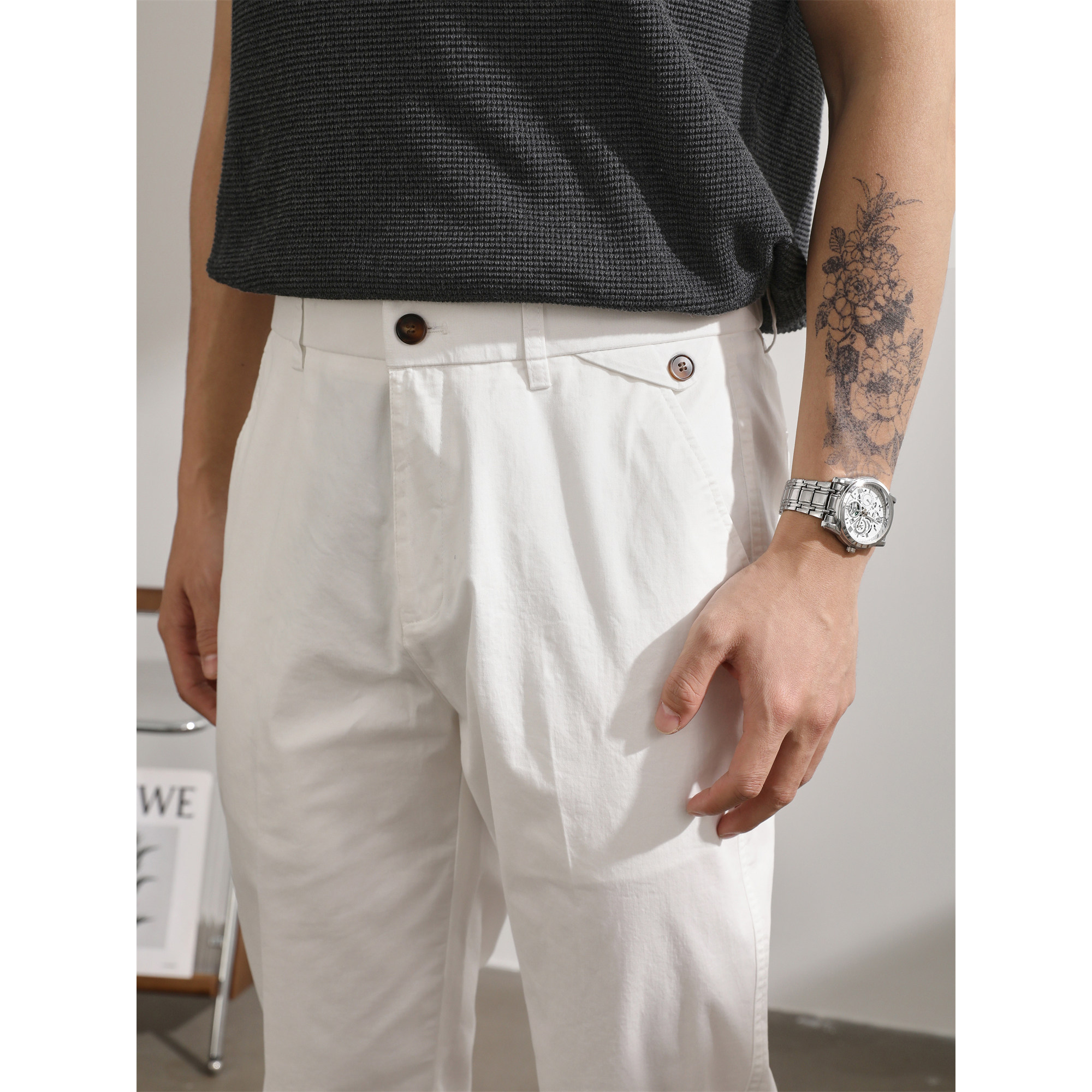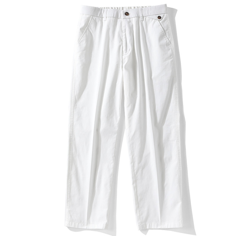 洗水白色休闲裤 LUUD 半松紧腰直筒裤 男士 子 都市通勤风纯棉长裤