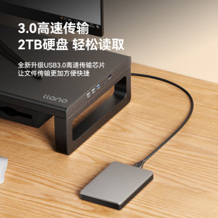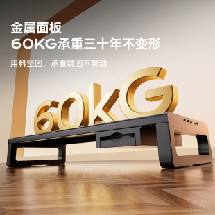 绿巨能电脑显示器增高架桌面金属台式 工位带抽屉收纳USB办公底座电竞置物改造扩展