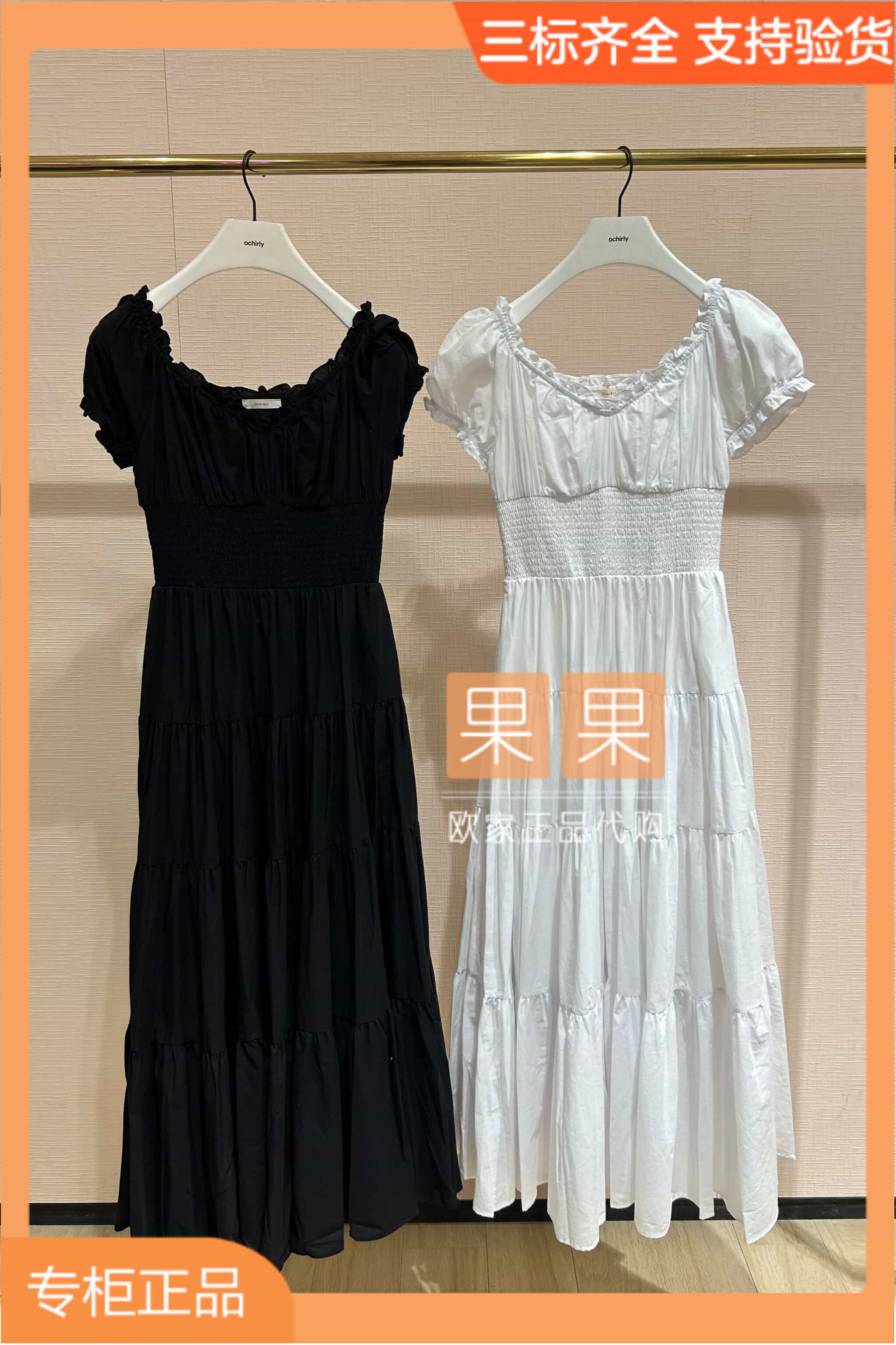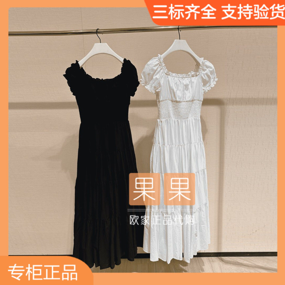 欧时力2024秋国内代购 连衣裙高腰显瘦气质长裙1LY3080760 白色修身