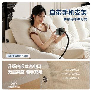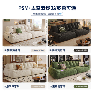 帕沙曼布艺可拆洗云朵电动沙发复古奶油客厅智能伸缩煦巢直排沙发