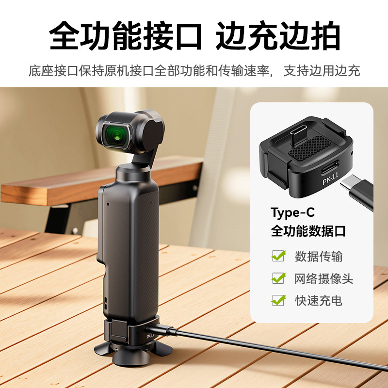 Ulanzi优篮子 c充电多接口磁吸三脚架 适用DJI大疆Pocket3小短腿支架拓展底座运动相机配件桌面支撑架type