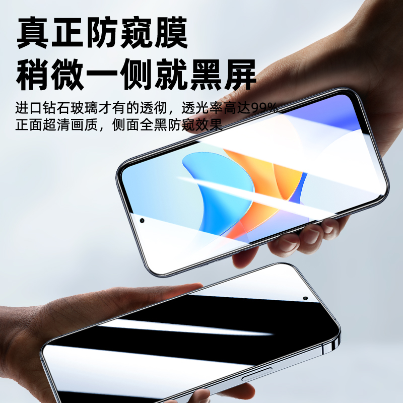 适用荣耀畅玩50plus防窥膜玻璃屏保honor钢化膜CLK AN00全覆盖防摔保护畅玩50手机贴膜防指纹畅玩50m防偷窥膜