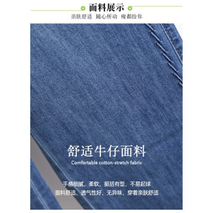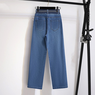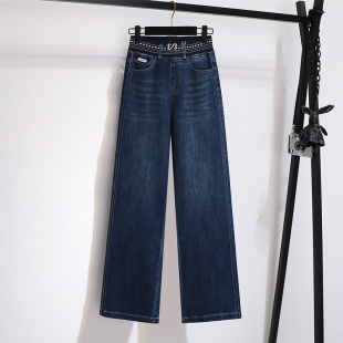 蓝色直筒长裤 宽松弹力显瘦春季 女春秋2026新款 松紧高腰阔腿牛仔裤