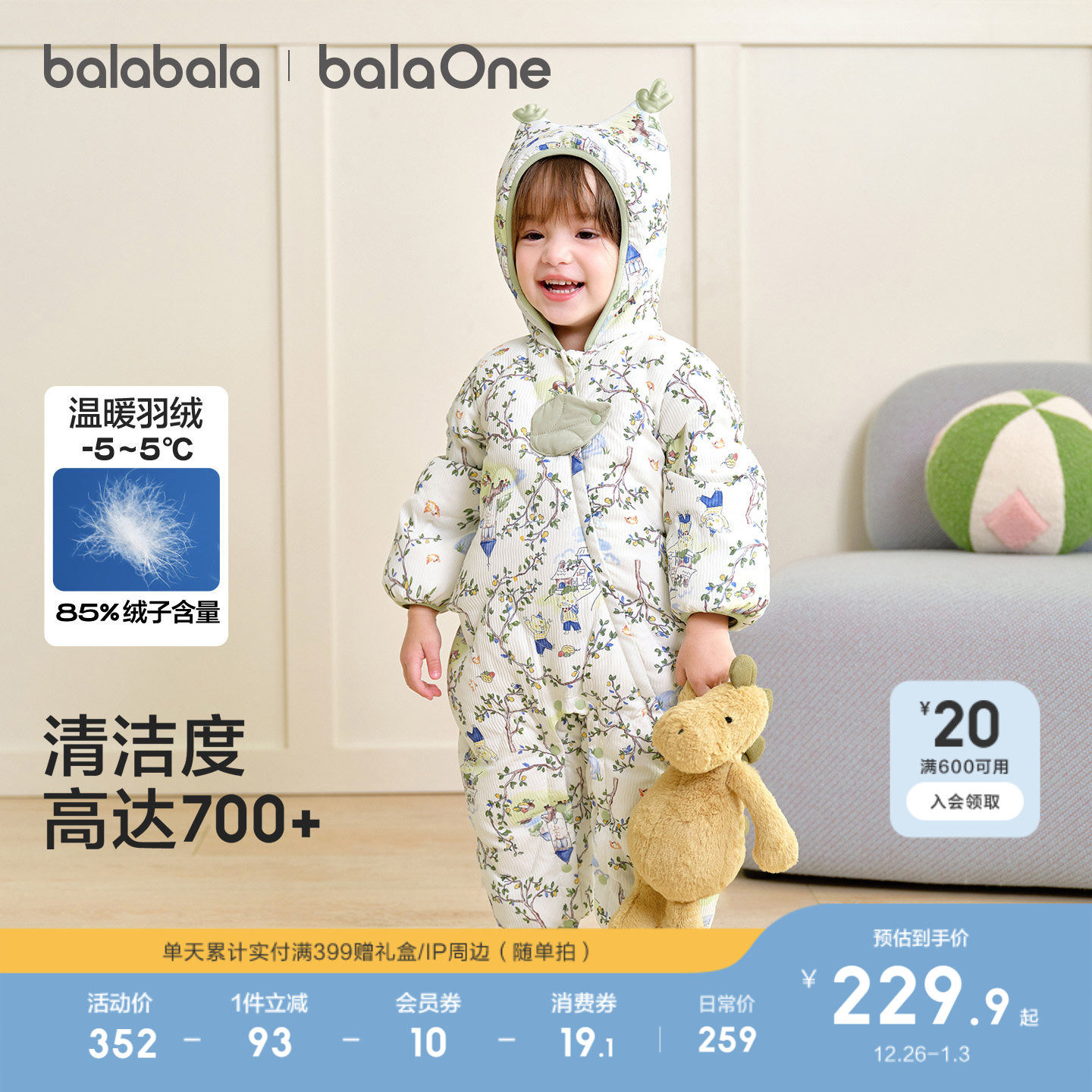 巴拉巴拉婴儿连体衣羽绒服宝宝衣服哈衣爬服2025新款 保暖 儿童冬装