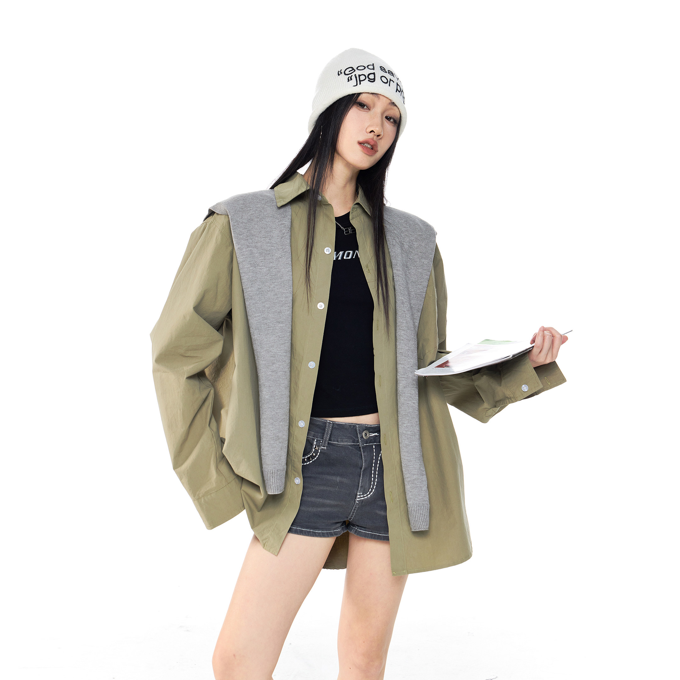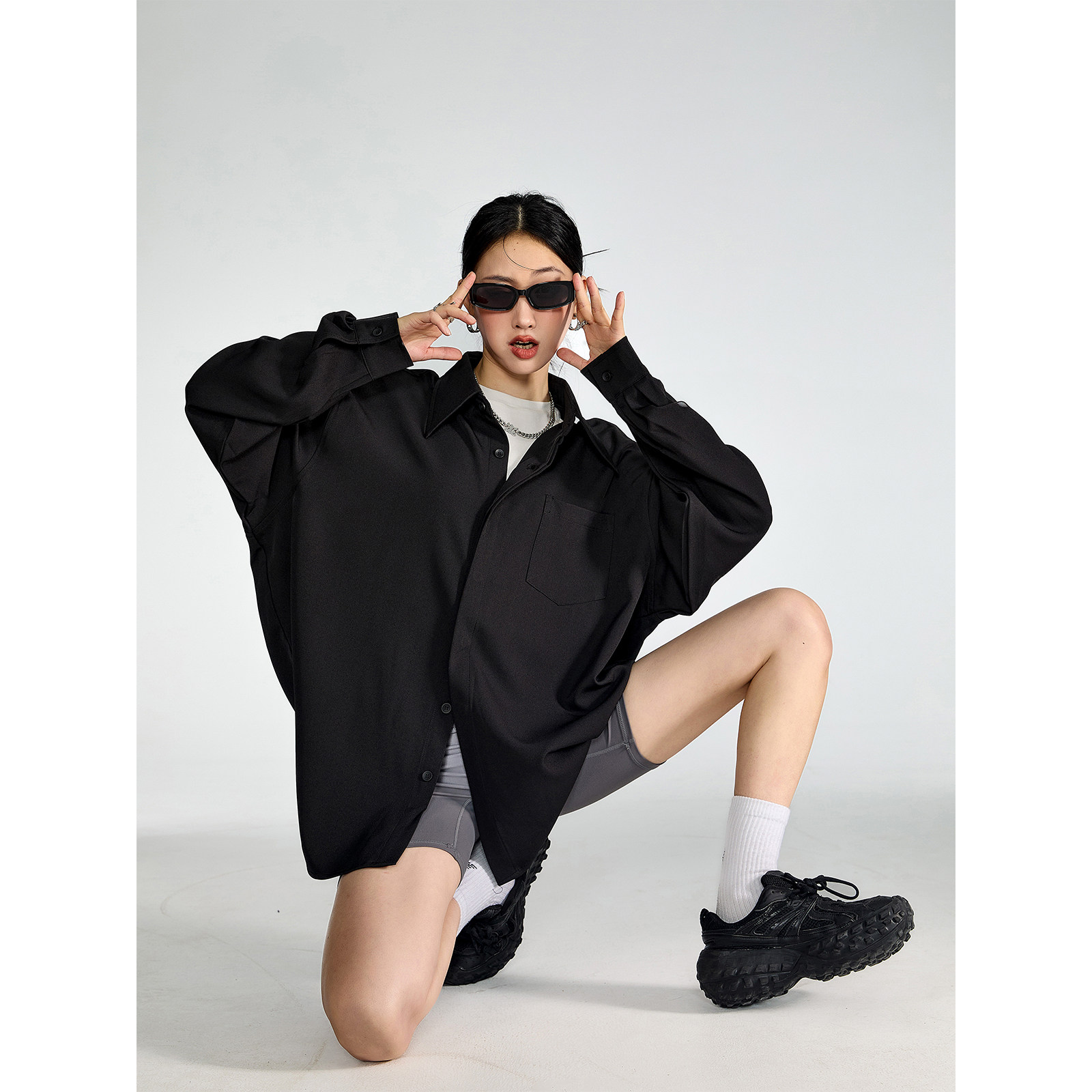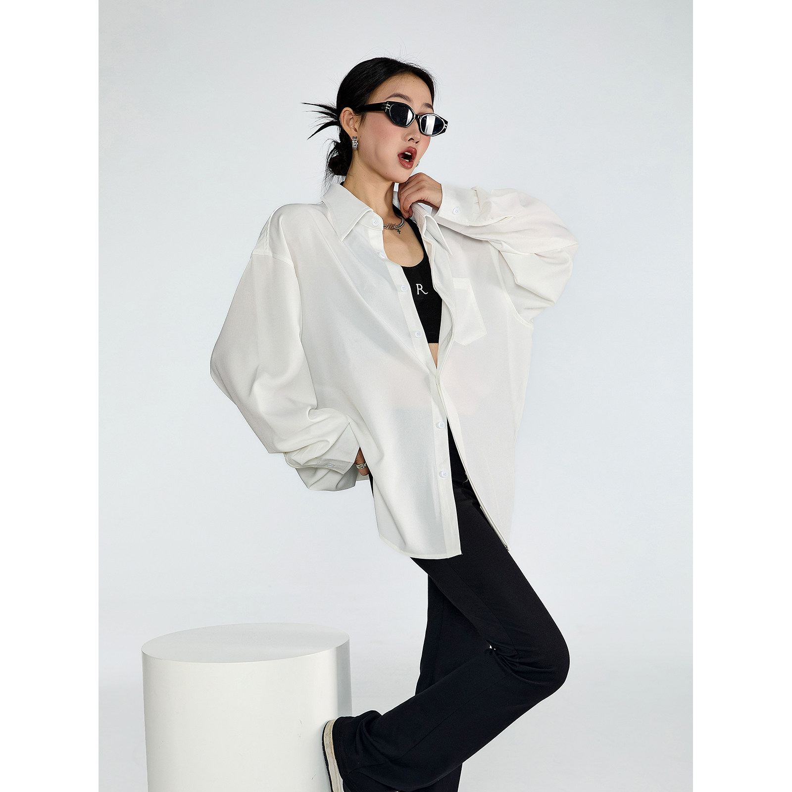 新款 ICHMODE 女春夏季 粉色衬衫 流行宽松廓形衬衣外套内搭上衣 美式