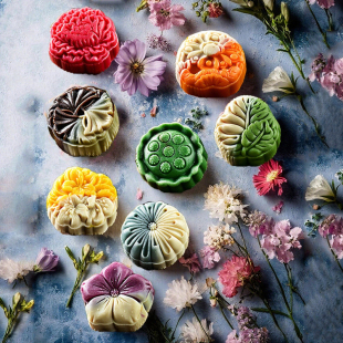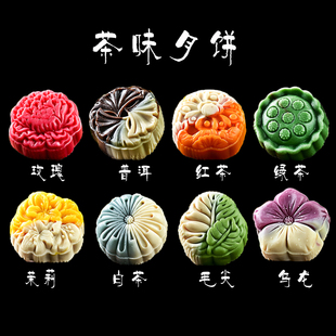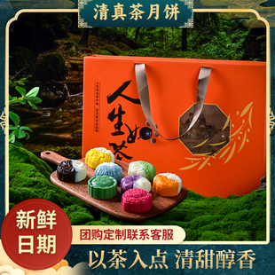 茶味月饼礼盒喜饼中式 桃山皮订婚糕点中秋节礼品 结婚清真茶点散装