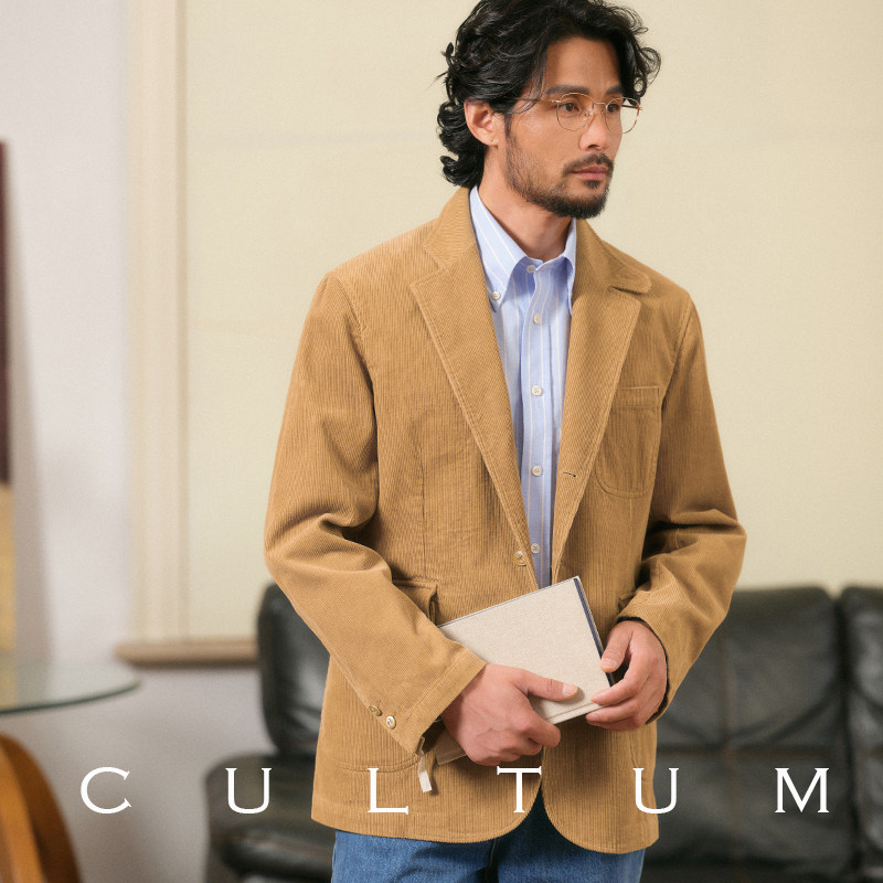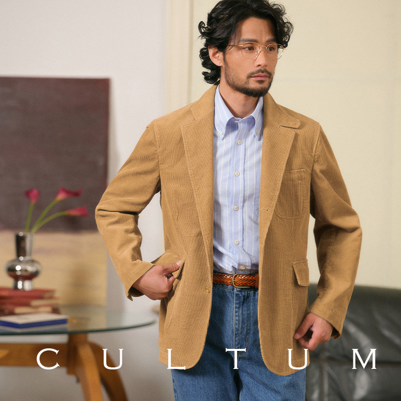 男休闲纯色高级感西装 CULTUM100%棉复古灯芯绒西服套装 无结构