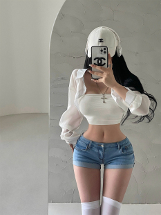 女 热裤 YoungGirlDay美式 辣妹性感低腰紧身包臀卷边显腿长牛仔短裤