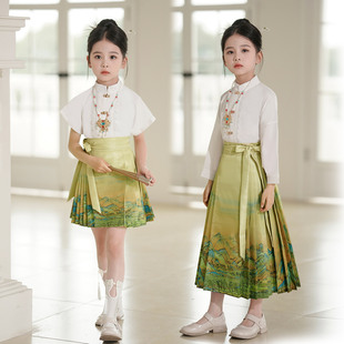 斜襟长衫 汉洋折衷套装 马面裙显瘦清新紫色蓝色 春水如兰 醉时阁