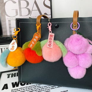 真獭兔毛水果系列柿子葡萄包包挂件桔子苹果桃子橙子车钥匙扣挂饰