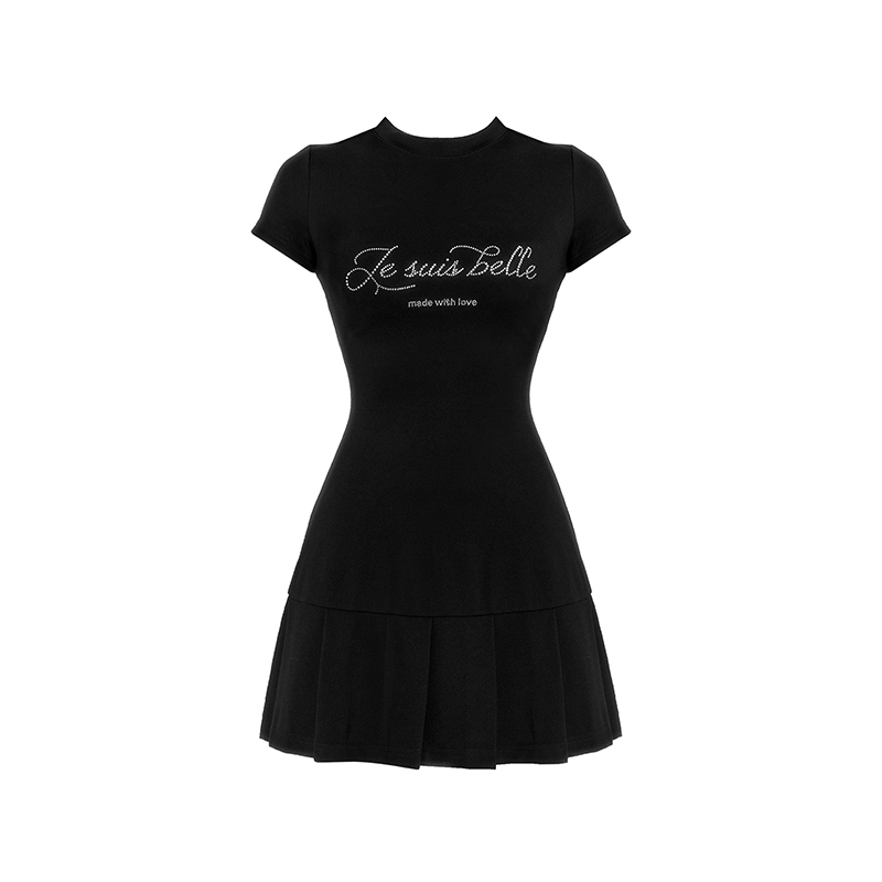VOCK 暗黑风甜酷水钻字母连衣裙女收腰显瘦百搭辣妹短裙 夜幕巴黎