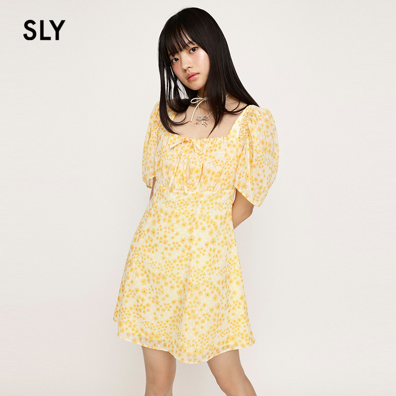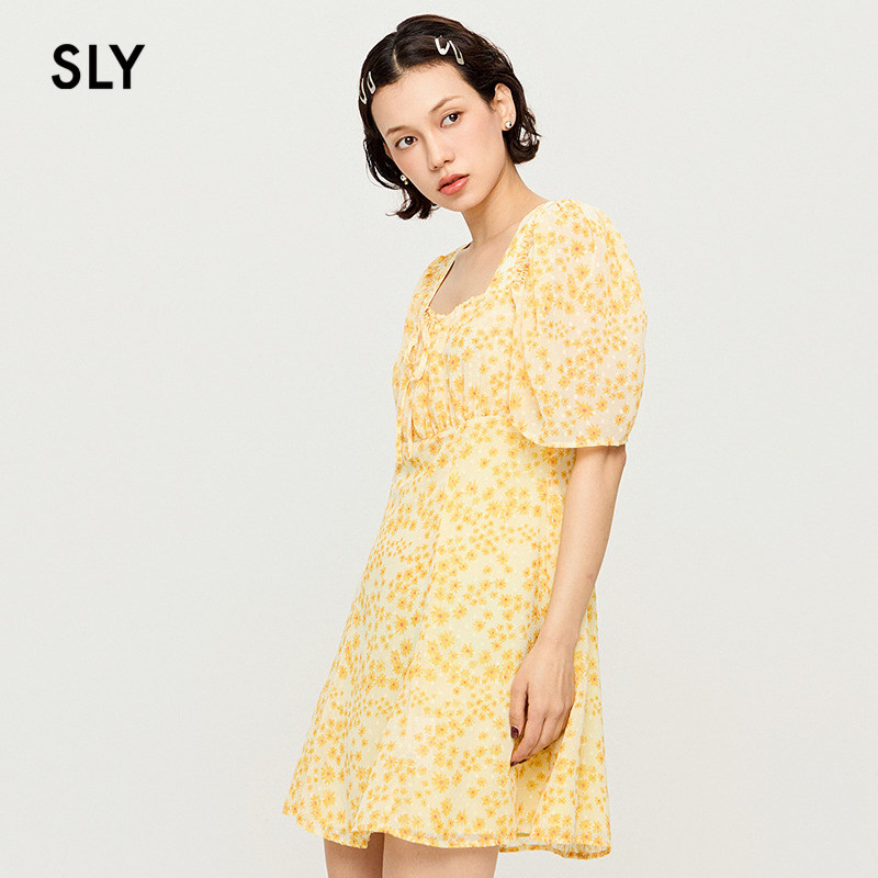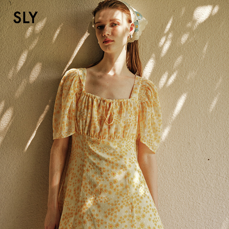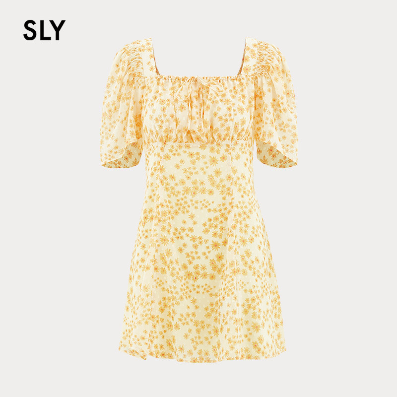 甜酷少女出游碎花裙方领连衣裙女038HSL33 新品 0101 夏季 SLY