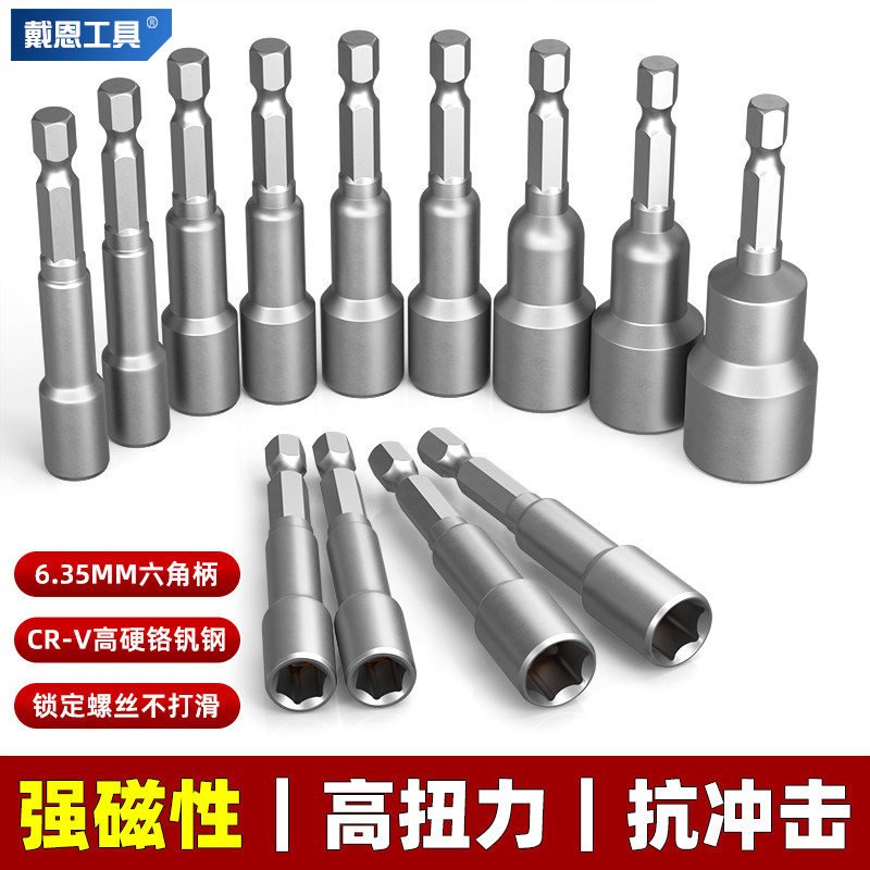 强磁套筒头内六角外自攻螺丝燕尾丝批头电动扳手电钻套头套装 8mm