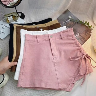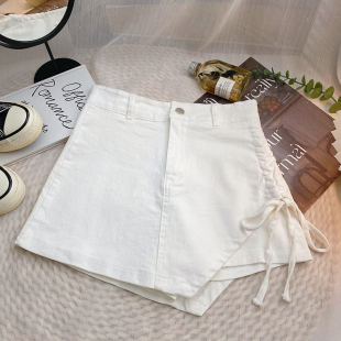 韩版 女新款 高腰显瘦防走光a字牛仔半身裙 裙短裙夏季 不规则抽绳裤