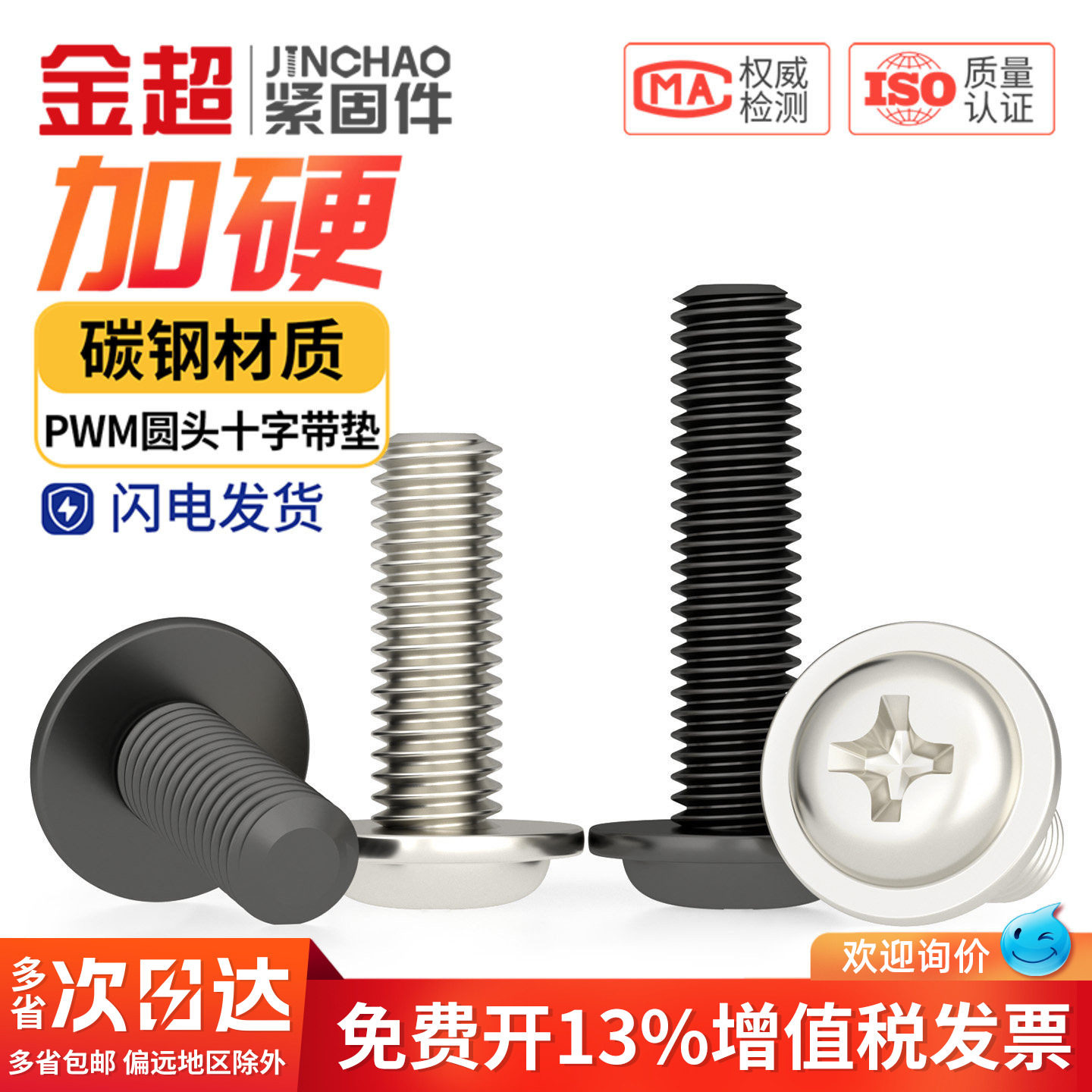 PWM 铁镀镍加硬十字圆头带垫小螺丝盘头带介机螺钉电脑机箱M2M3M4