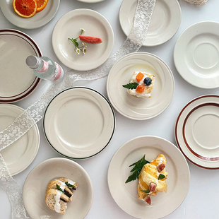 老式 搪瓷菜碟圆盘搪瓷盘子复古餐厅菜盘果盘汤盘怀旧碟饭盘10个装