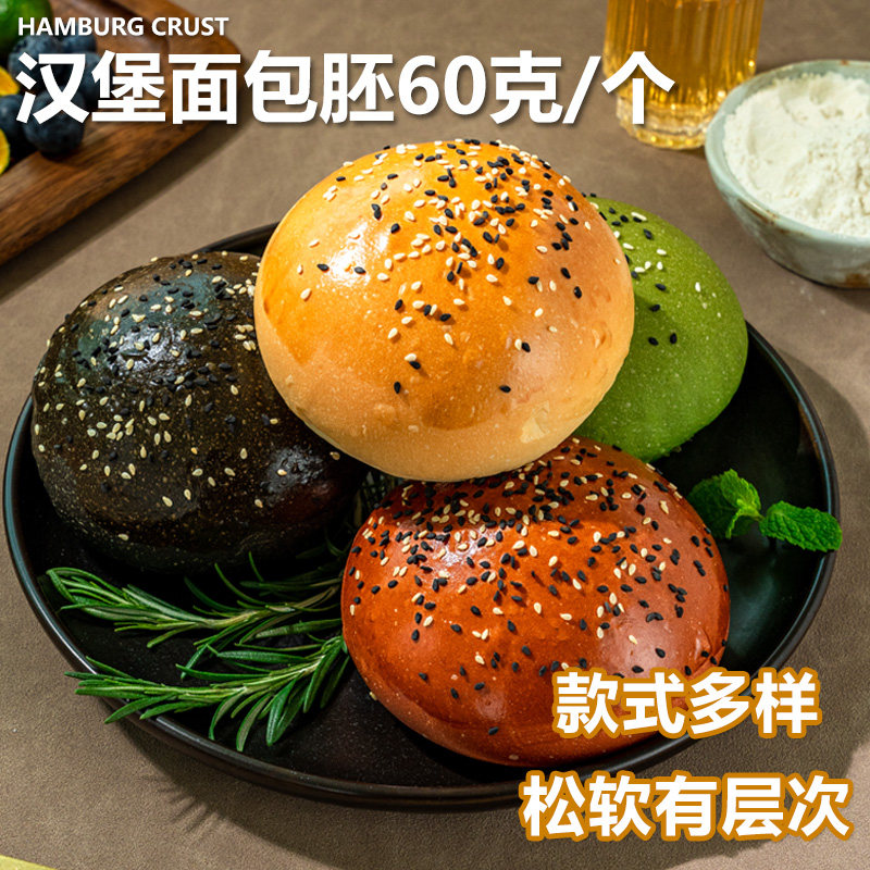 汉堡胚面包胚半成品美式 汉堡包商用餐厅墨鱼广东家庭汉堡包坯60克