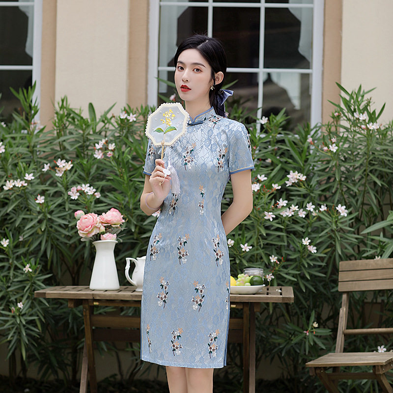 2023短款 新款 衬裙平时可穿 年轻款 古法半枫荷旗袍少女微胖改良时尚