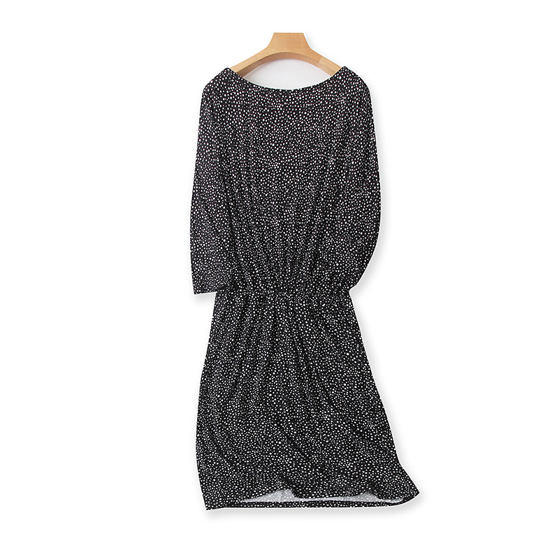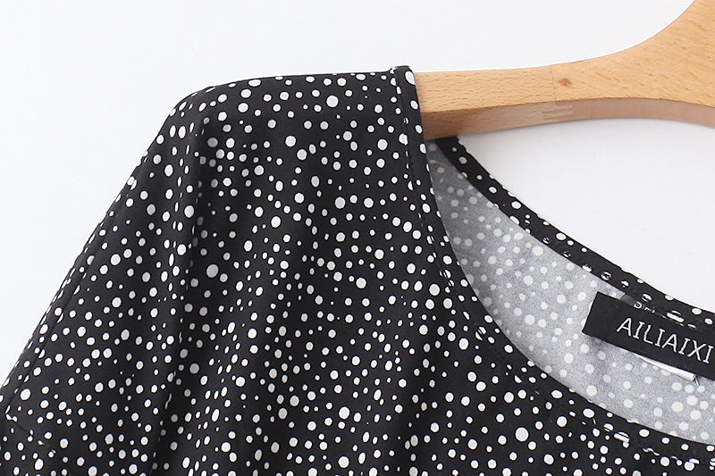 新款 长袖 圆领圆点连衣裙 裙子L 夏季 女时尚 大码 宽松系带中长款