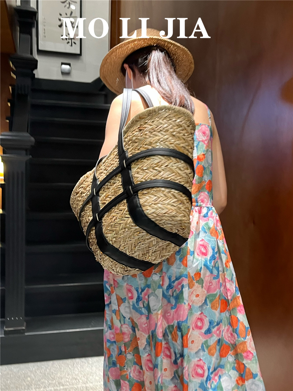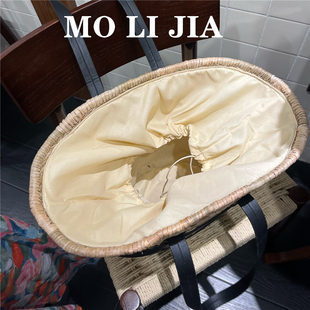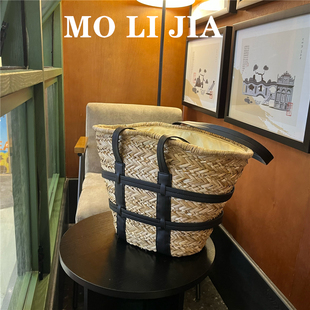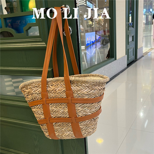 海边度假风高级感拼接草编包女手工小众大容量菜篮子沙滩单肩女包