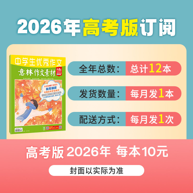 写作技巧提升 12月 高考作文素材积累 意林期刊 2025年跨年订阅 意林旗舰店2026年2025年订阅作文素材高考版