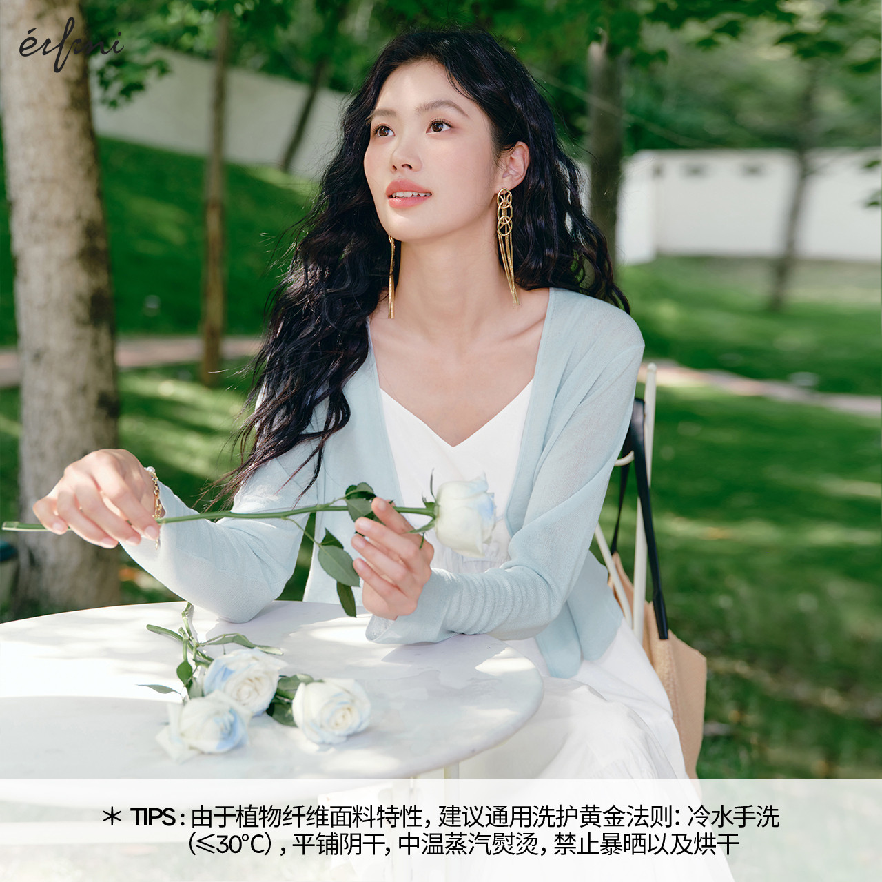 针织开衫 防嗮罩衫 伊芙丽亚麻面料透气舒适系带薄款 夏 朱珠代言
