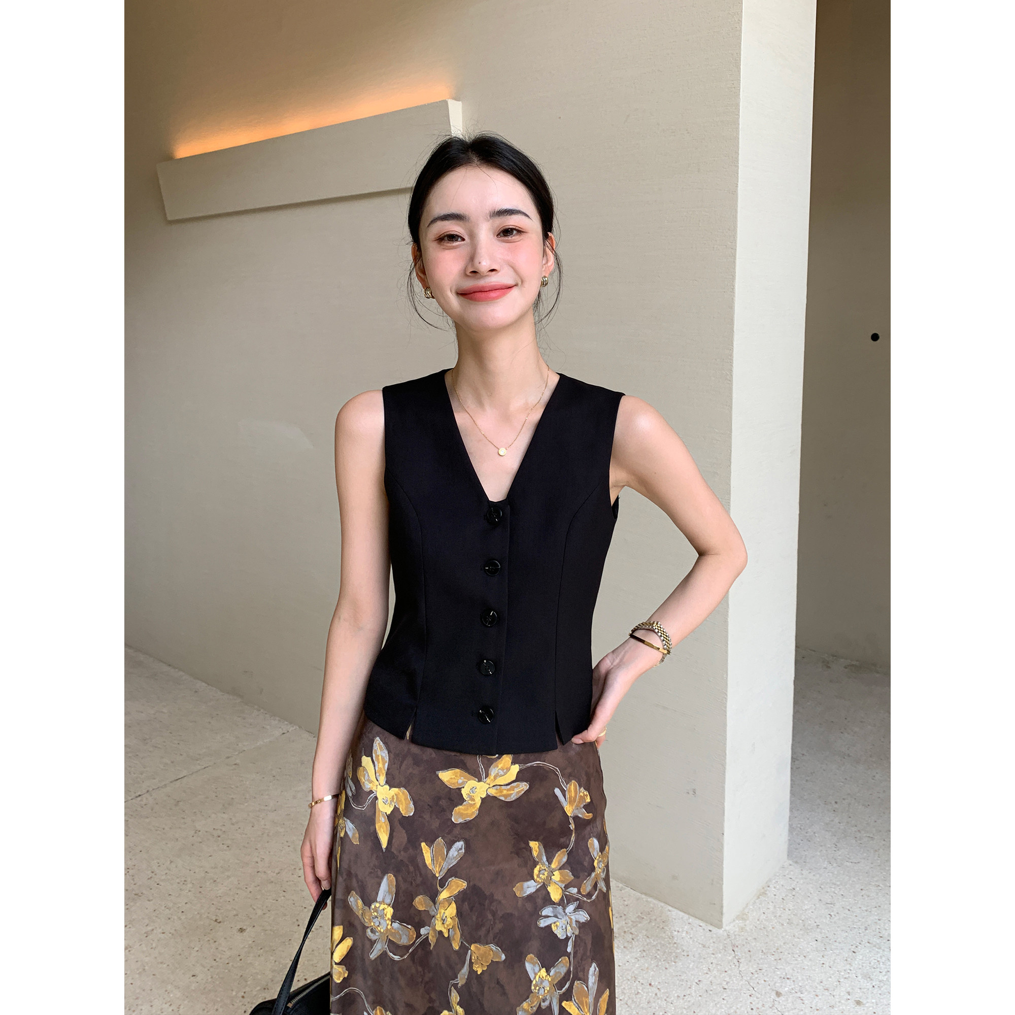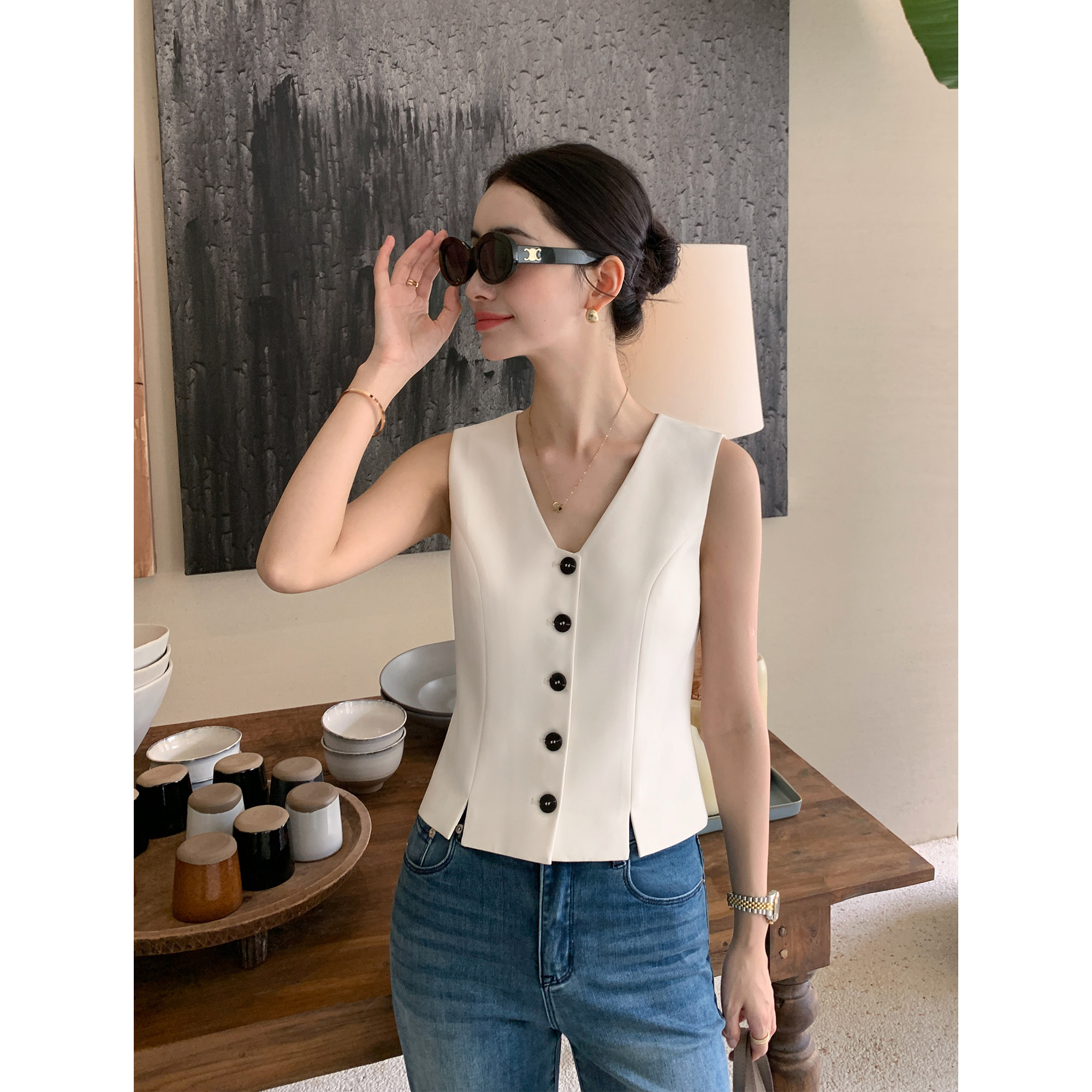 Lin 马甲开衫 高智白领通勤无袖 西装 上衣 马夹背心女外搭短款 Maven