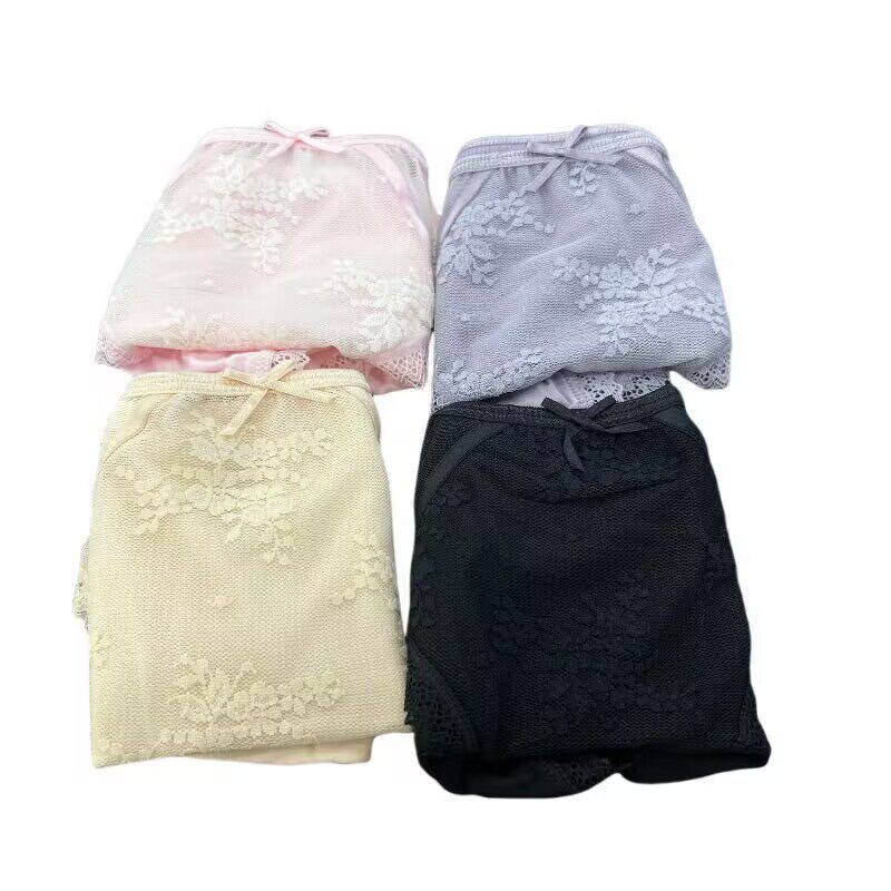 蝶安芬竹纤维女士中腰无痕透气网纱薄款 蕾丝肤黑紫色小平角短内裤