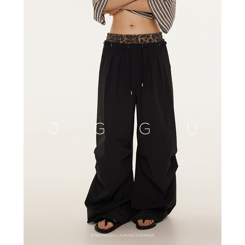 套装 裤 T恤女夏假两件拼接腰头工装 晶咕黑标JGGU肌理烧花印花短袖