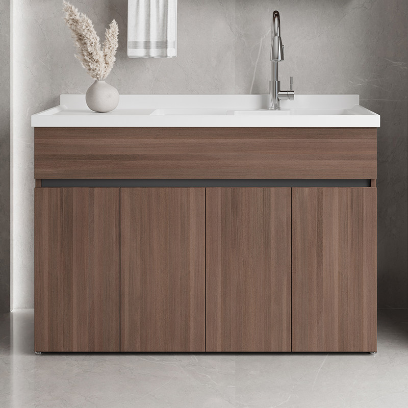胡桃木浴室柜组合现代简约卫生间陶瓷一体盆洗手洗脸盆 包安装